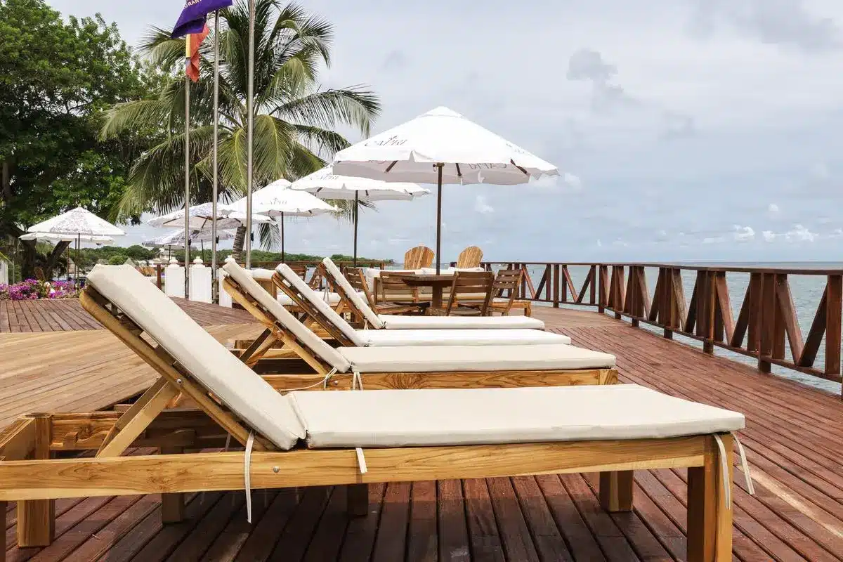 Camas y asoleadoras frente al mar