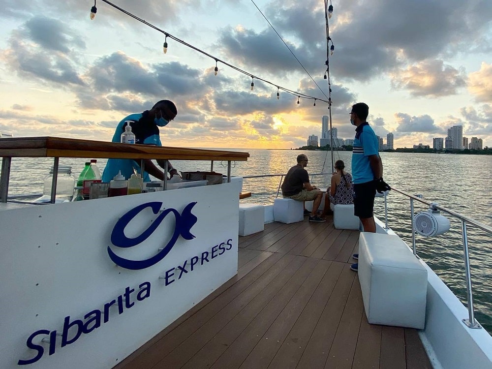 El Atardecer Express es un paseo en barco de aproximadamente 2 horas por la Bahía de Cartagena, diseñado para disfrutar el espectáculo natural del atardecer acompañado de bebidas refrescantes y un ambiente agradable.